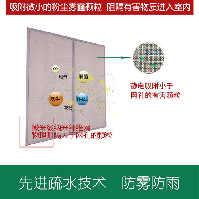 北京上門安裝防霧霾窗紗,更換防塵防霧霾窗紗網(wǎng),納米靜電防霧霾紗窗能夠正常換氣還有防雨水的特點(diǎn),并有效阻擋花粉、微塵等空氣中的pm2.5顆粒通過,是客戶們非常中意的窗紗網(wǎng)替代產(chǎn)品。納米防霧霾紗窗