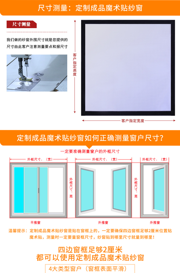 防霧霾魔術(shù)貼紗窗四邊窗框需要有2厘米左右的空檔防霧霾魔術(shù)貼紗窗適用四大類型的窗戶: