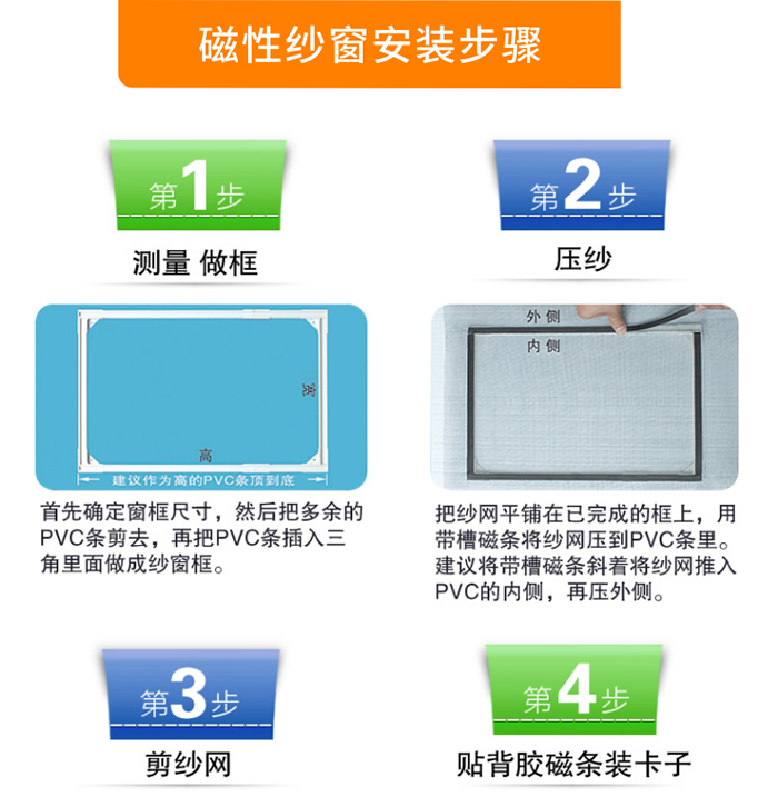 防霧霾紗窗防霧霾紗窗安裝步驟防霧霾紗窗安裝步驟,如上圖所示,首先需要量尺做框,然后壓紗,剪紗網(wǎng)。防霧霾紗窗制作好之后減去多余的窗紗網(wǎng)防霧霾紗窗制作好之后減去多余的窗紗網(wǎng),到這一步紗窗基本就安裝完成了。
