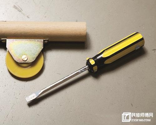 五、準(zhǔn)備好壓條的滾輪和壓條?;蛘呤欠奖愀鼡Q紗窗的作業(yè)的工具。沒(méi)有滾輪的用一字改錐也可以將就用。