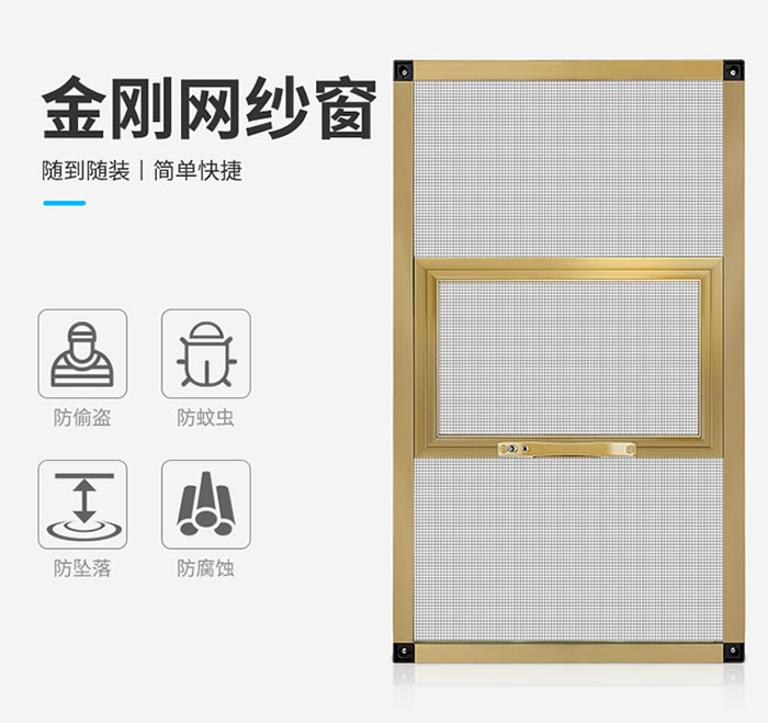 金剛網窗紗適用于一體窗,平開窗,斷橋鋁合金金剛網紗窗。